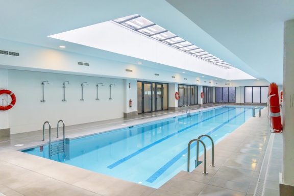 Las instalaciones cuentan con servicio de conserjería, una sala coworking, una sala polivalente, piscina exterior, piscina cubierta, pista de padel, gimnasio, rocodromo infantil y vestuarios.