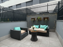 La zona de la cocina también es independiente y totalmente equipada. Se puede contar con cama adicional, gracias al sofá cama. La característica estrella sin duda es su patio interior.