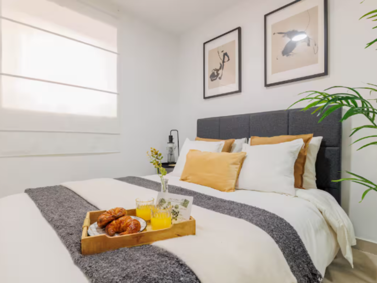 Este apartamento cuenta con dos dormitorios independientes, un baño privado completo y una sala de estar-comedor acondicionado para disfrutar de un buen desayuno o cena con la familia.
