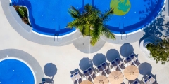 Cuenta con una cocina equipada con una amplia nevera-congelador, microondas, horno, vitrocerámica. Ésta se integra al salón con mesa de comedor, sofá cama y Smart TV. La habitación es independiente y cuenta con una segunda televisión y el baño dispone de una ducha efecto lluvia. Las terrazas privadas con vistas a la piscina permiten disfrutar en cualquier momento del día del buen clima de la isla.